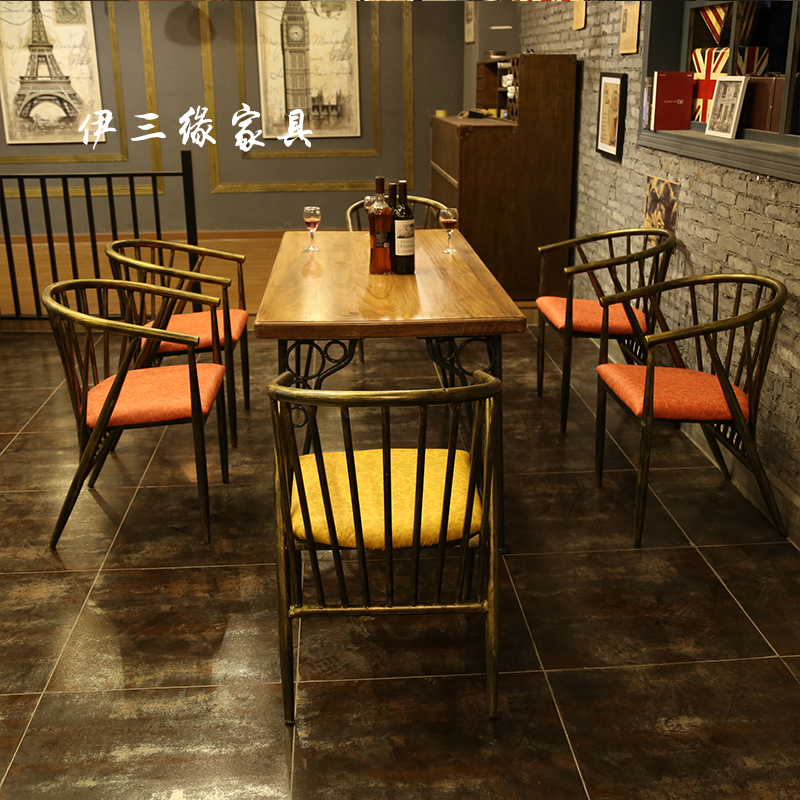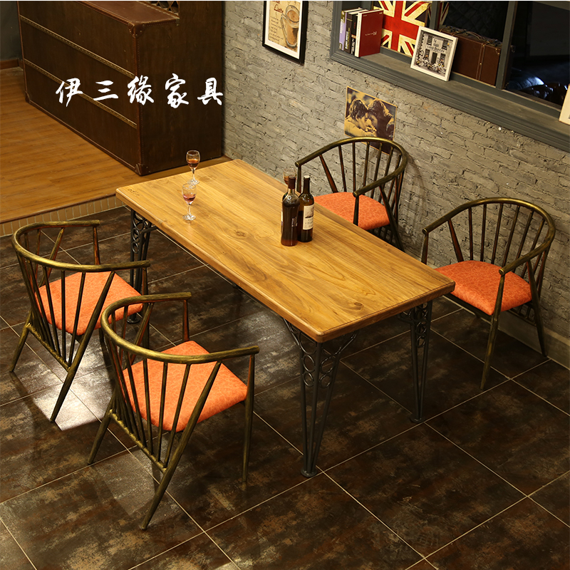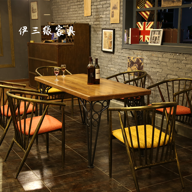 American retro dining table and chairs Music dining bar Solid Wood Bar Chair Themed Industrial Wind Catering Clear, casual table and chairs