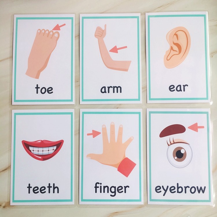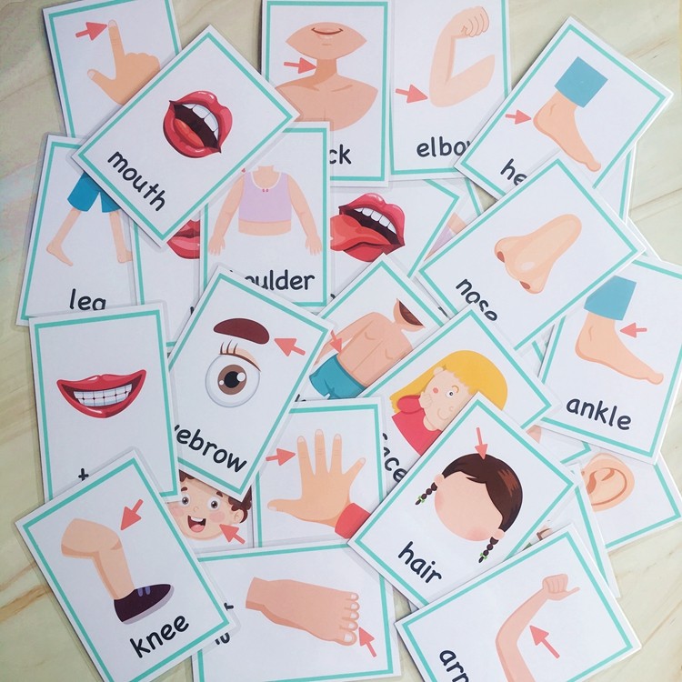 English cards waterproof flash cards body body parts cards 30 Kindergarten children's word cards Cognitive enlightenment maps