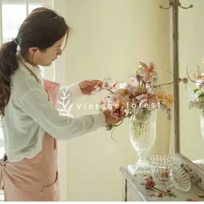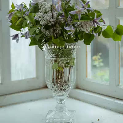 Export foreign trade retro relief light luxury crystal French transparent glass high foot vase fresh flower arrangement water cultivation flower lily