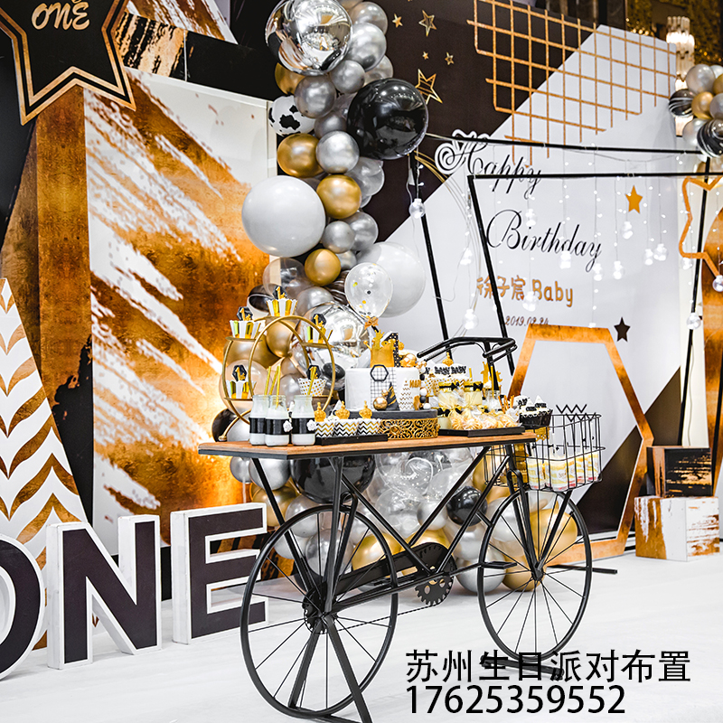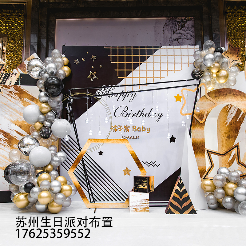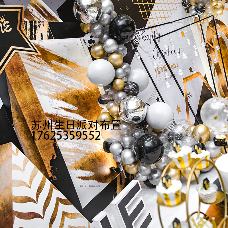 Suzhou Red Black and Black Gold theme Baby 100-day banquet children's birthday party decoration balloon layout door