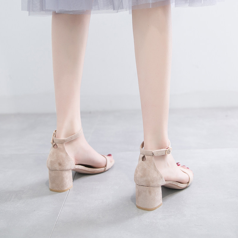 A word buckle sandal 2022 new summer hundred and rough heels with skirts gentle heels
