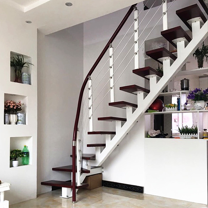 Inclined straight beam steel wood stairs Straight ladders loft Villa Living Room Indoor Duplex armrest Step modern overall