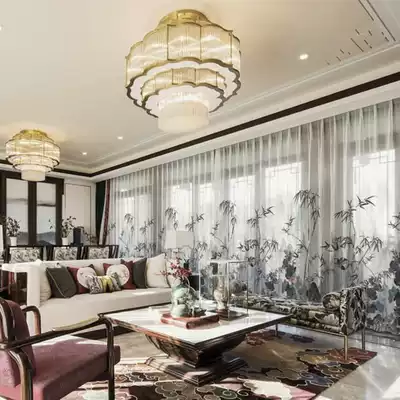 Curtain gauze curtain, living room, new Chinese landscape painting, chiffon yarn, transparent to the living room, classical study