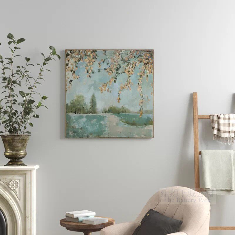 Spot New York Lower City Park Imports Tranquil Rain Garden Peacock Green Oil Painting Decoration Painting High 93 5cm
