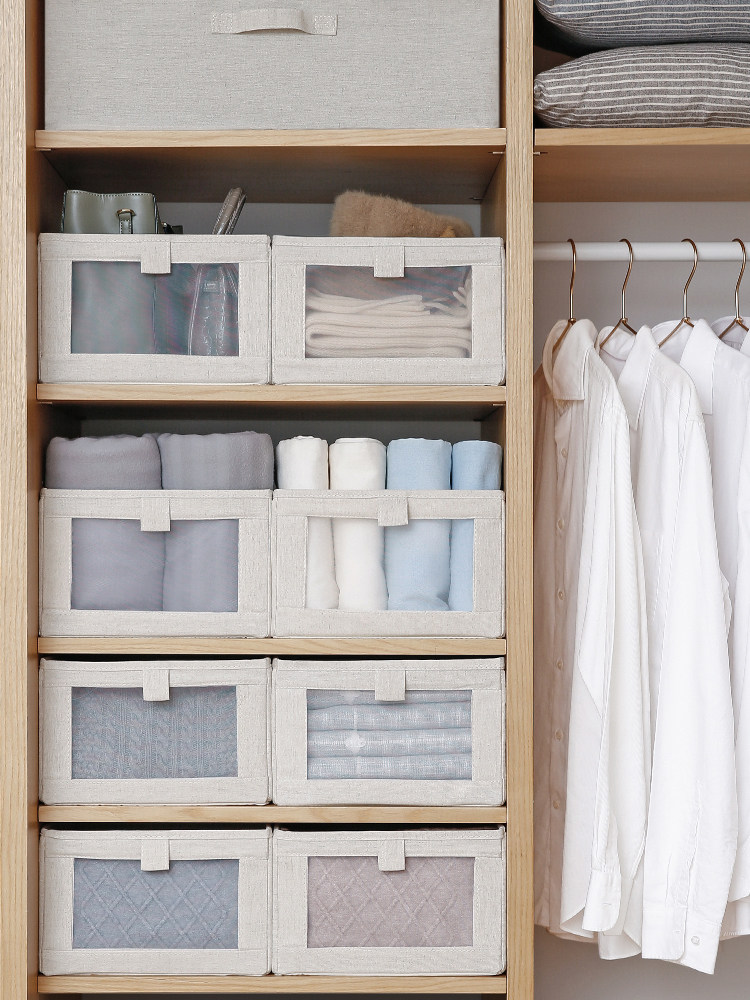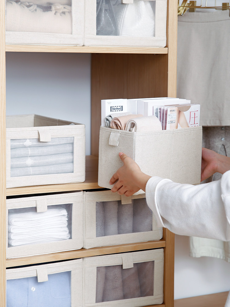 Frost Mountain Japanese wardrobe cotton linen fabric storage box clothing finishing storage box foldable clothing storage box