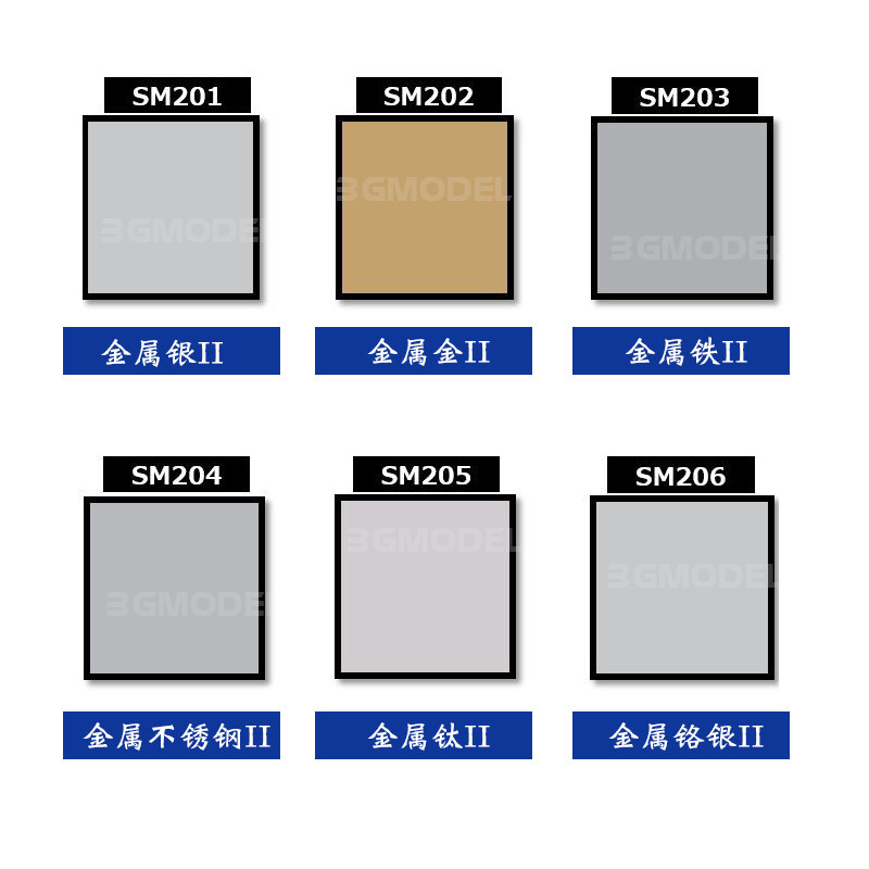 SM201 (Metallic Silver II)SM202(Metallic Gold II) SM203 (Metallic Iron II)SM204 (Metallic Stainless Steel II)SM205 (Metallic Titanium I