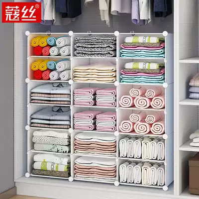 Wardrobe storage artifact layered partition partition floor shelf bedroom space saving school finishing slit multi-layer shelf