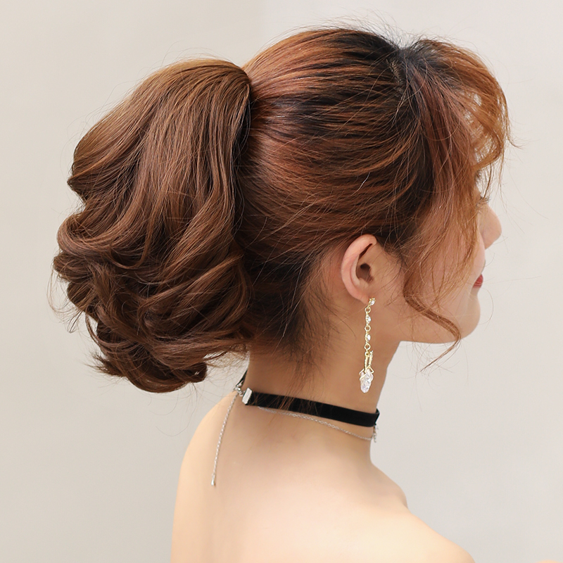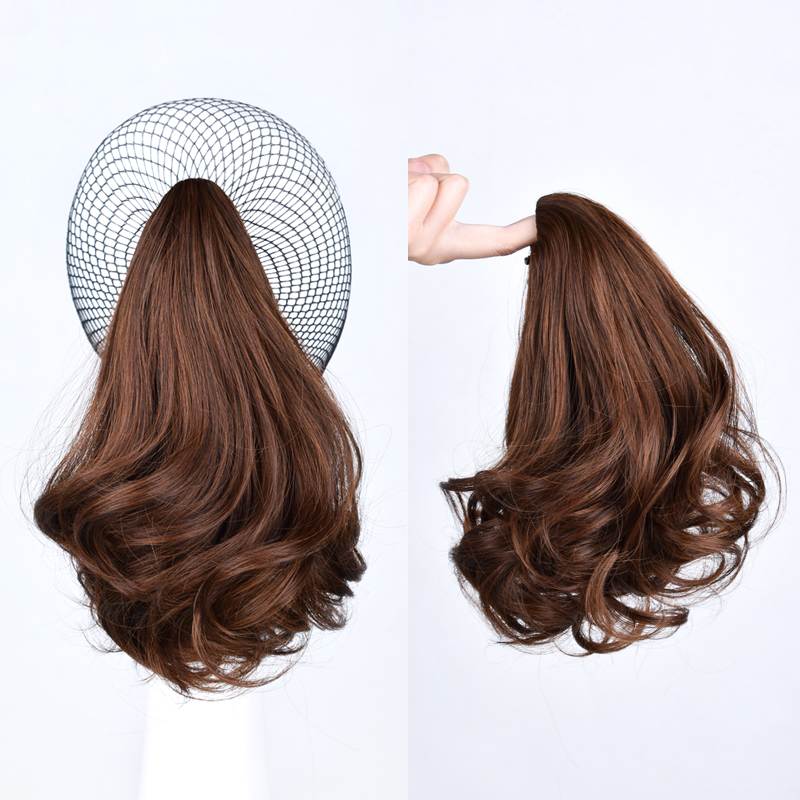Wig female ponytail pear flower short curly hair fluffy big wave temperament Medium long roll grab clip clip type short ponytail