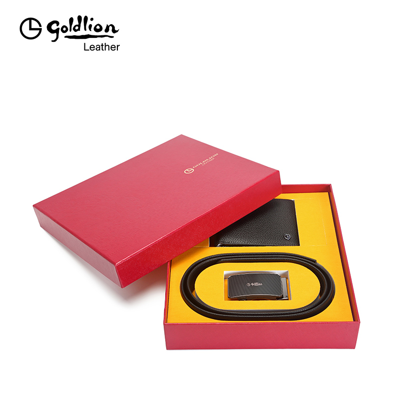 Gold lion belt wallet gift box set men's short leather wallet wallet men's belt belt waist seal