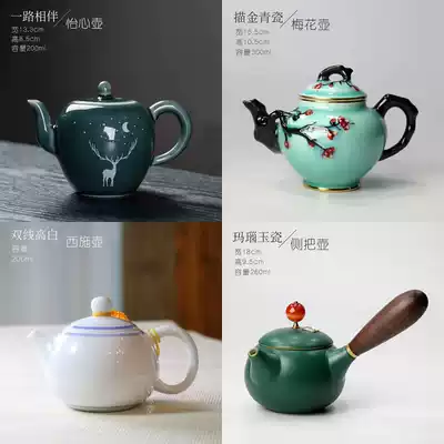 Selected Teapot collection|White porcelain jade porcelain small teapot kiln variable side handle pot Coarse pottery blue and white household ceramic tea set