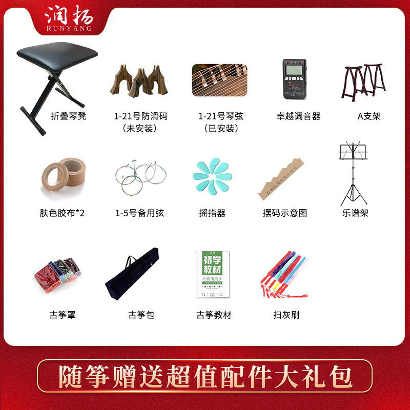 Runyang Guzheng Magpie Yingchun performance level professional examination Guzheng piano Mahogany solid wood Mother-of-pearl shell carving Senior Guzheng
