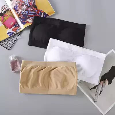2-piece non-slip shoulder-free large size fat mm anti-light bandeau bra underwear with chest pad Black gathered without trace base