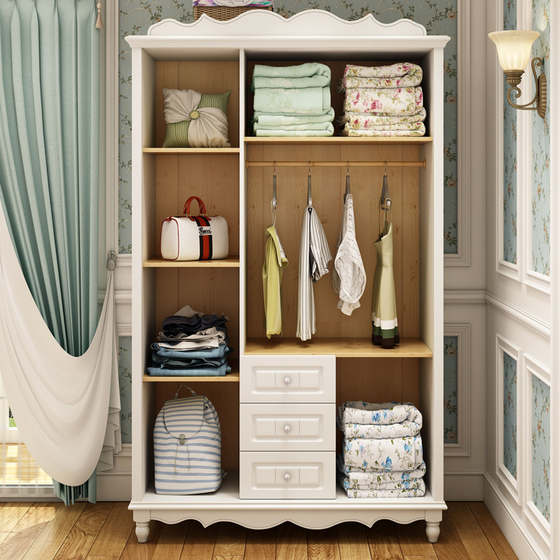 European type wardrobe Han type rural wardrobe solid wood takes take out wardrobe two three four white wardrobe