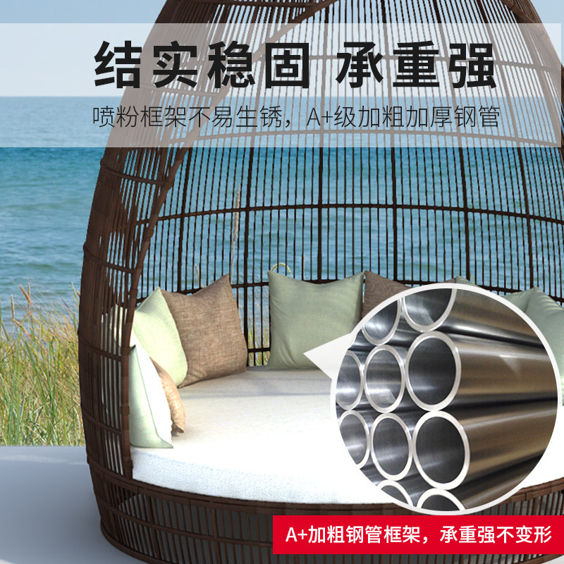 Rattan Outdoor Leisure Rattan with large round beds Garden Villa Indoor Creativity Large Floor Beach Sun Lying Bed