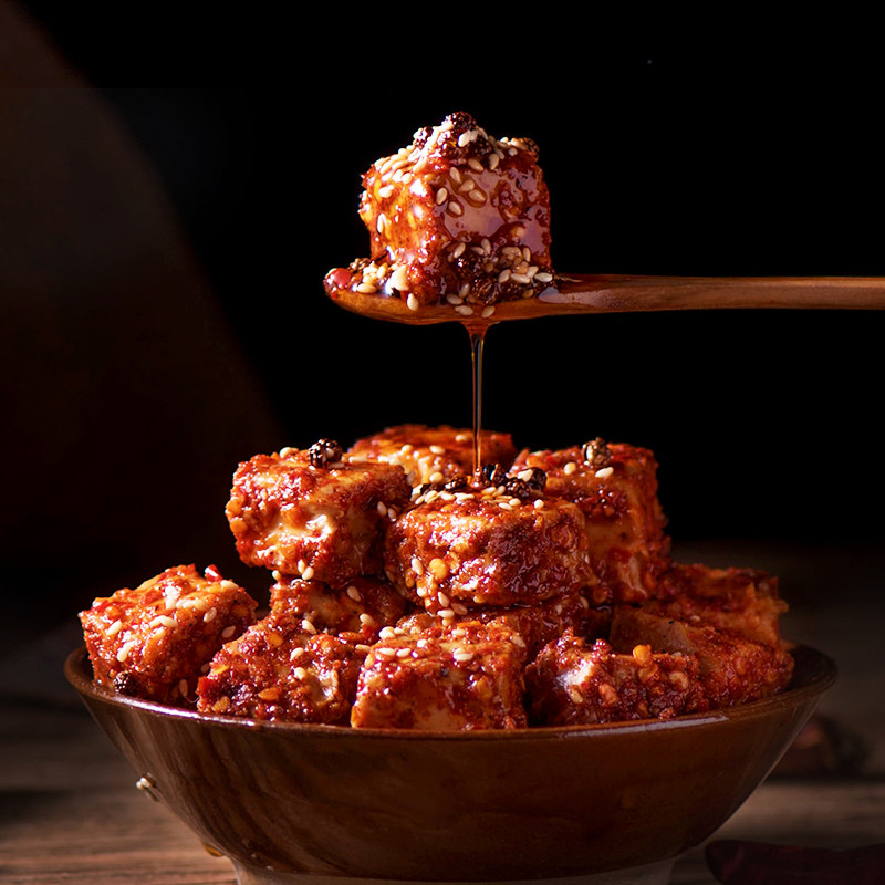 Earth Daoist eighteen fragrant red oil tofu milky red square farmhouse homemade Hunan special Mouldy Curd Spicy hot and spicy curd
