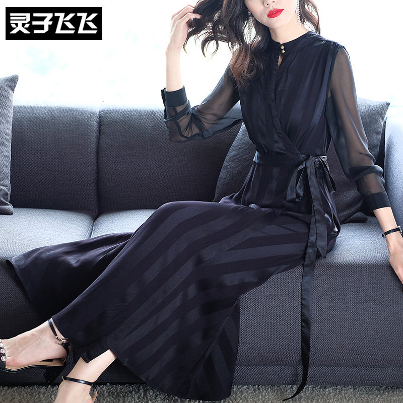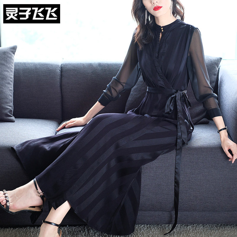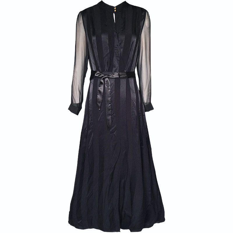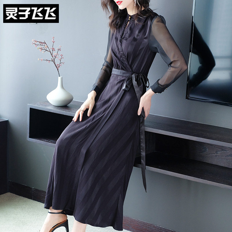 2019 summer black retro French Hepburn little black dress V-neck slim waist and slim A-line dress
