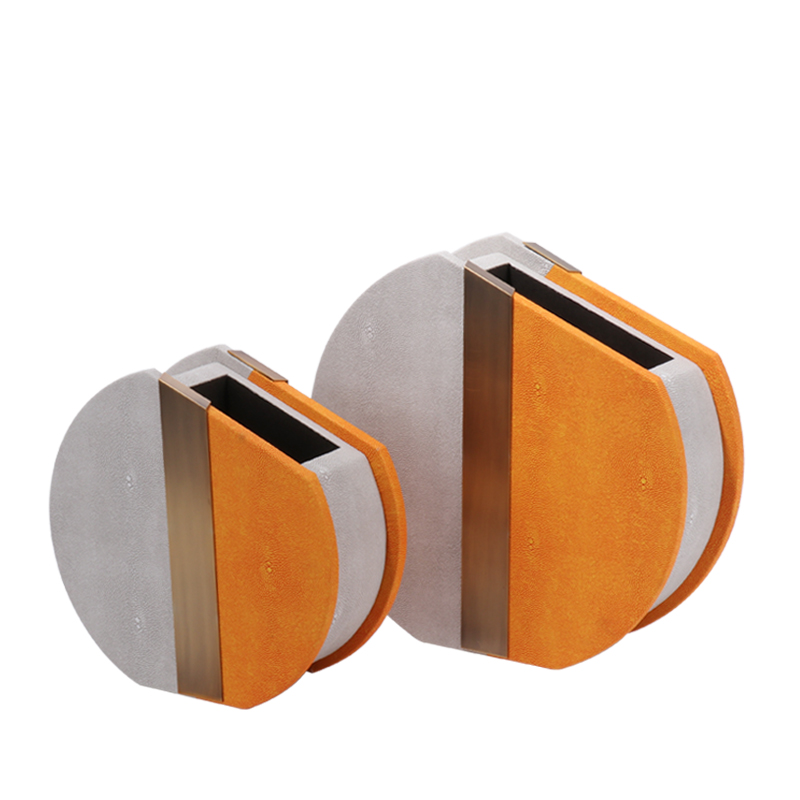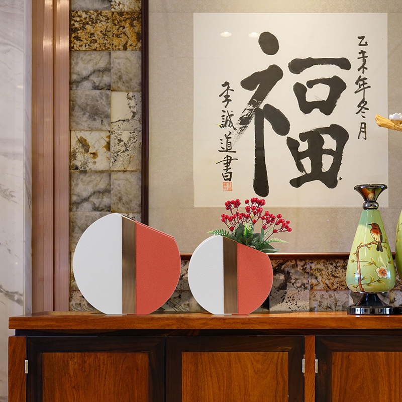 New Chinese leather wooden flower arrangement decoration model room soft decoration living room TV cabinet porch flower ornaments