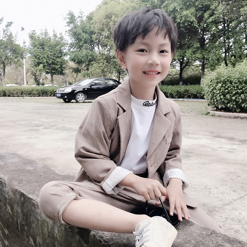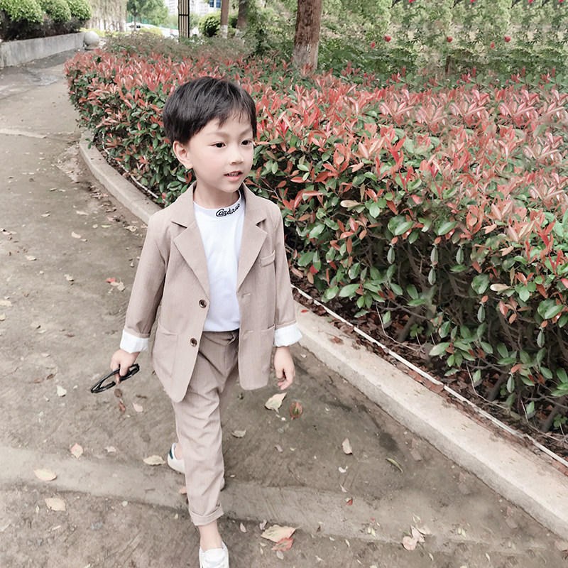 Boy's small suit suit 2022 Spring loaded with new child handsome 2 sets of CUHK Tong Han version Chaohan Casual West Suit