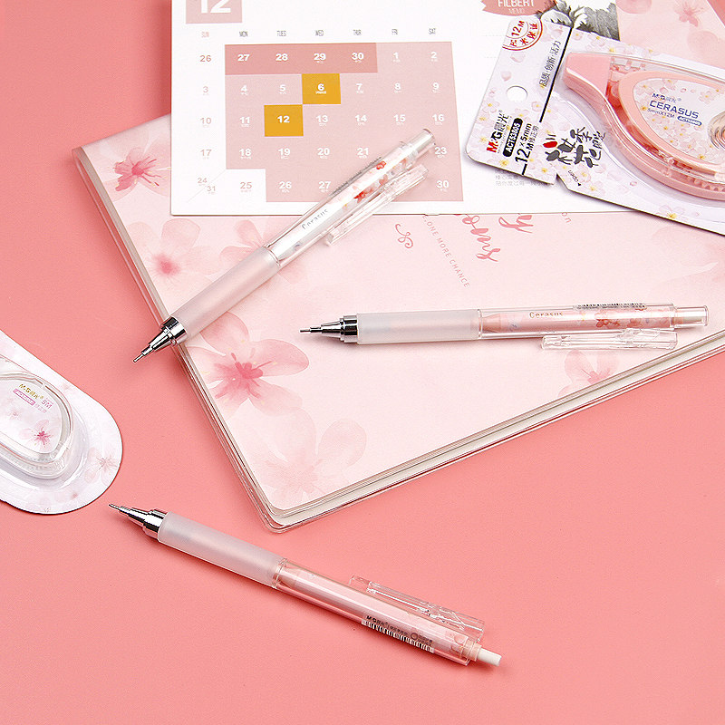 Morning Light Cherry Blossom Limited Series Automatic Pencil 0 5mm Elementary School Students Cartoon Activity Pencil Exam Writing Painting Low Center Of Gravity Pencil Small Fresh And Cute With Pen Cap