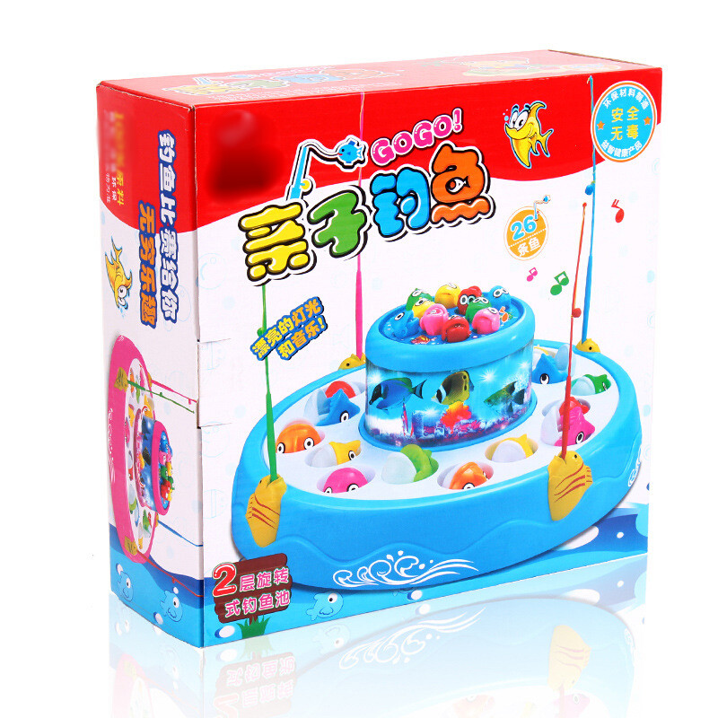 Children's electric fishing toy large double-layer magnetic rotating fishing set baby educational toy