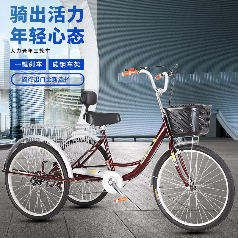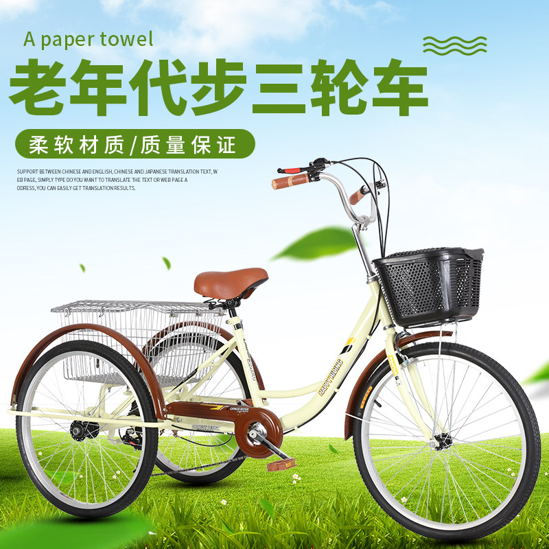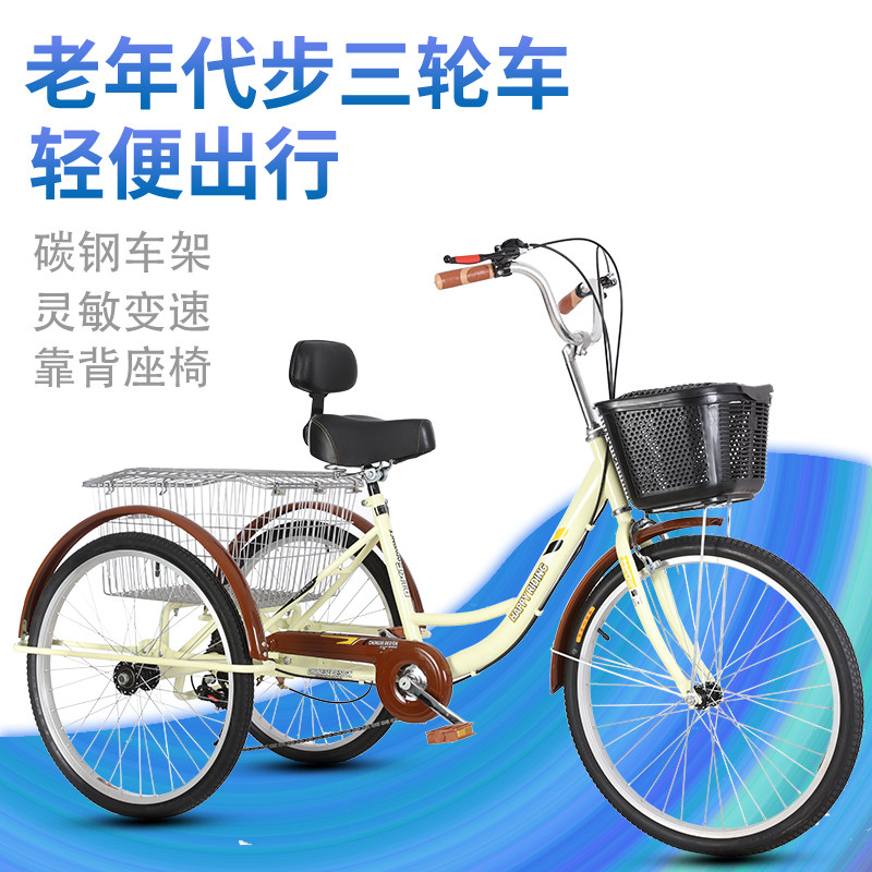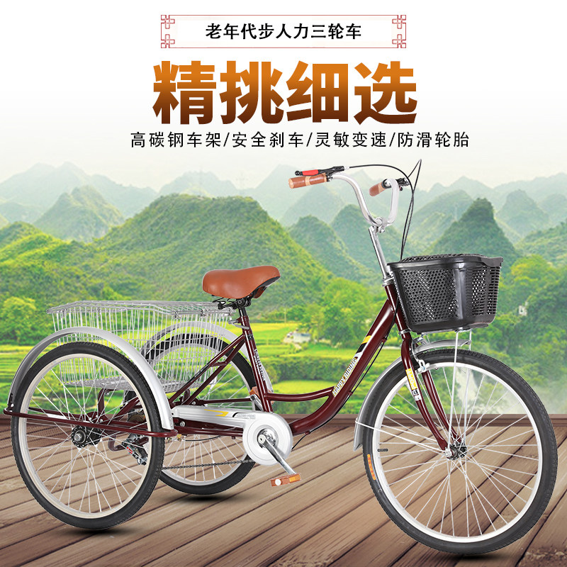 Elderly three-wheeled bicycle Elderly bicycle Adult human cargo recreational vehicle Adult vegetable cart variable speed 24 inches