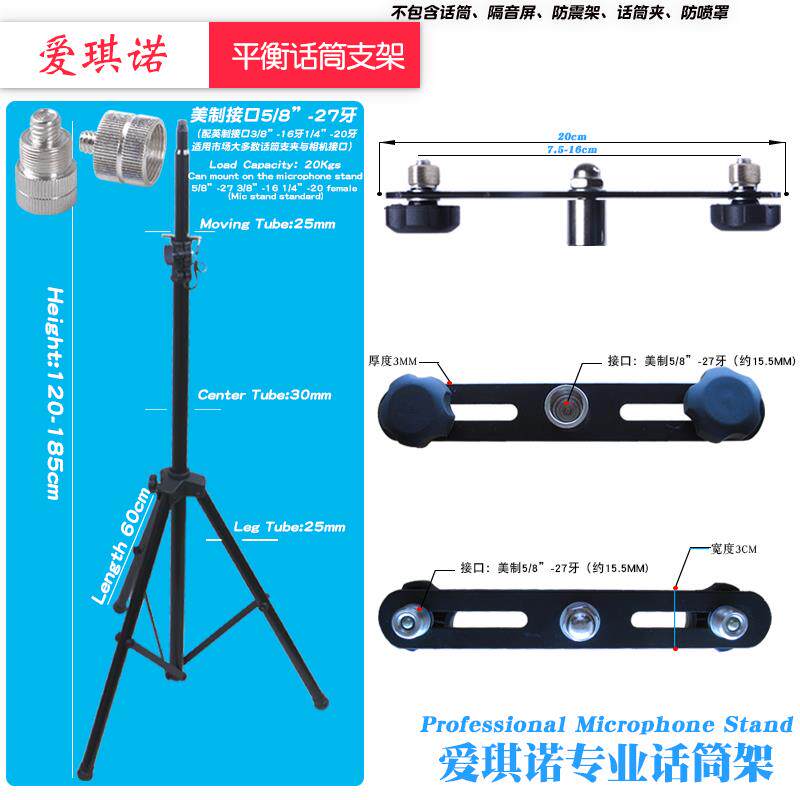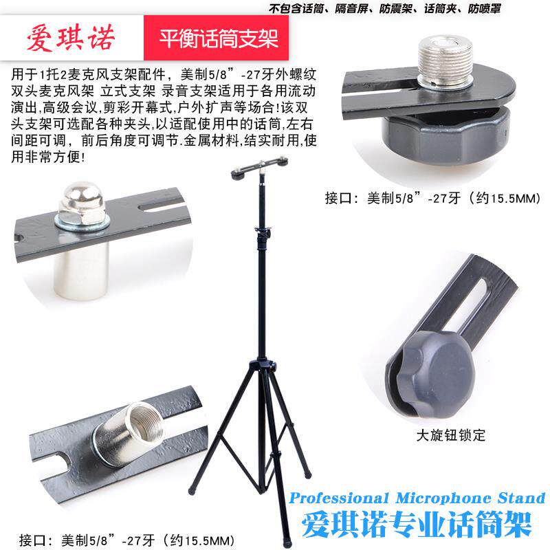 Spacing Adjustable Microphone Balance Stand One Holder Two Type Floor Microphone Stand with Weighted Microphone Tripod