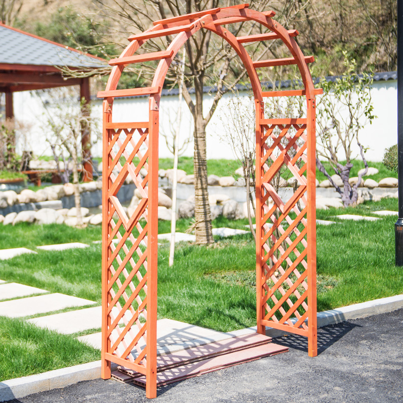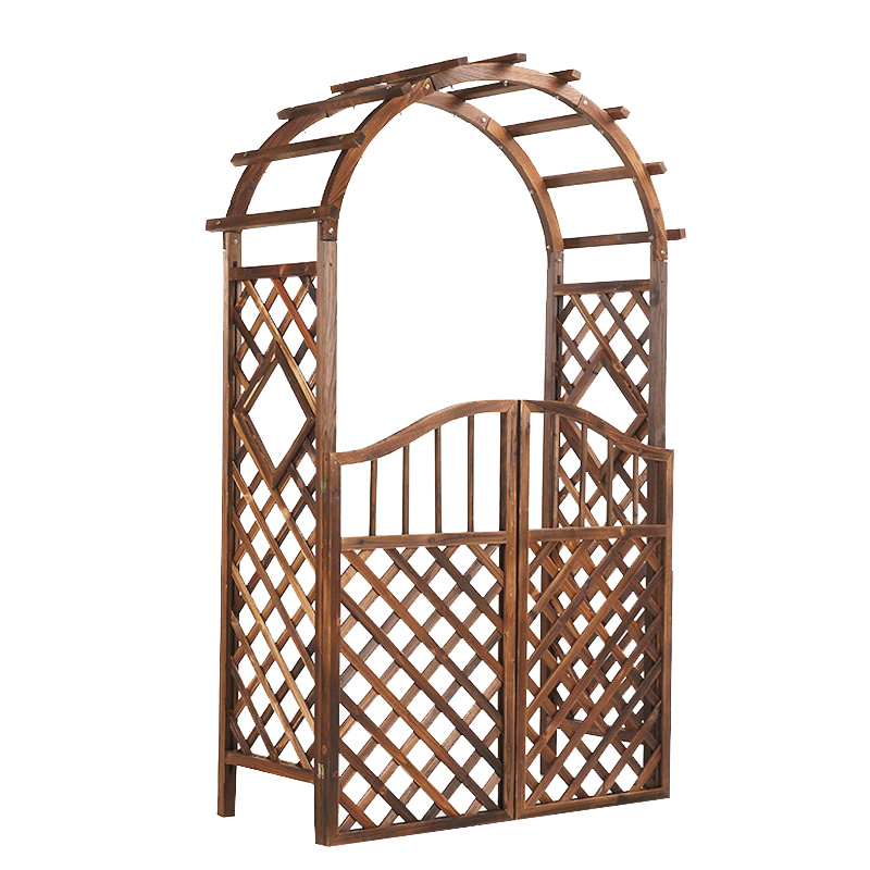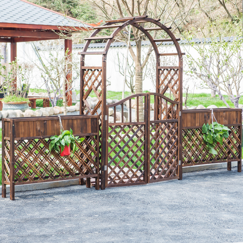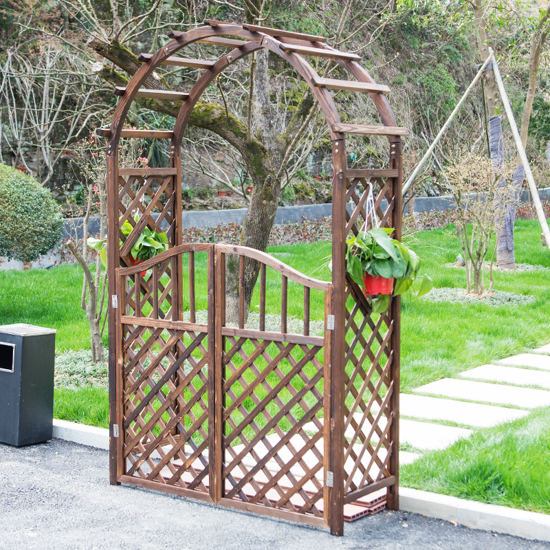 Garden arch climbing pergola Anti-corrosion wood arch climbing frame carbonized courtyard grape rack Solid wood flower rack Garden wooden door