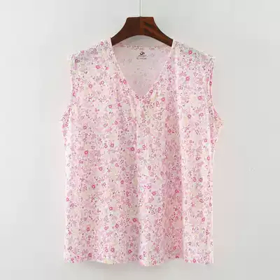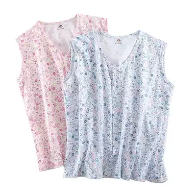 Summer middle-aged and elderly women's sweatshirt cotton short sleeve vest elderly printed sleeveless cardigan loose cotton mother underwear