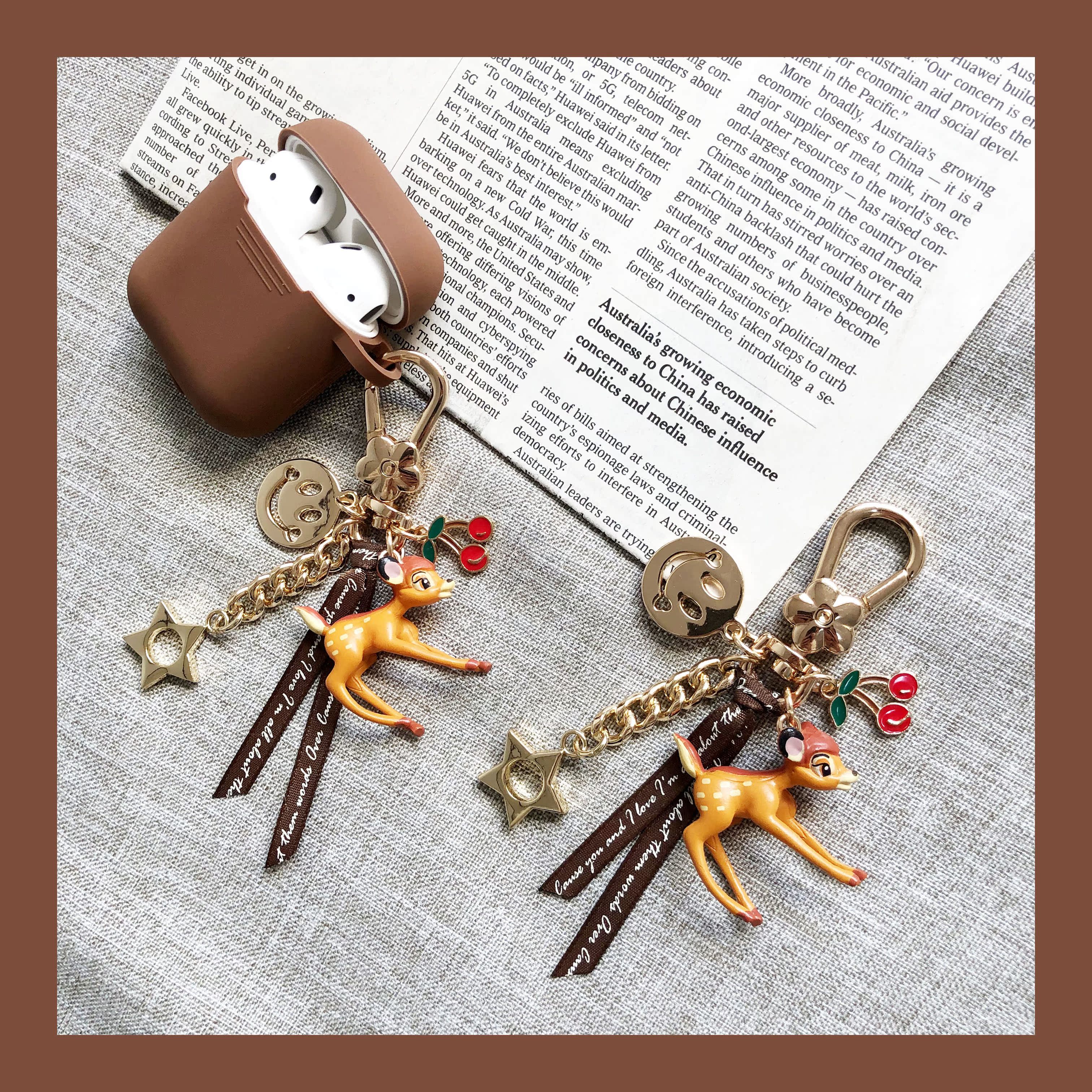 Curry airpods protective sheath small deer Bambi than dark brown protective sheath small deer Bambi pendant