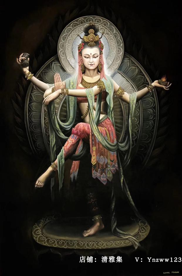 Newali thousand-handed Guanyin four-armed Guanyin Bodhisattva Nepal pure hand-painted pure handmade Nival Thangka hanging painting