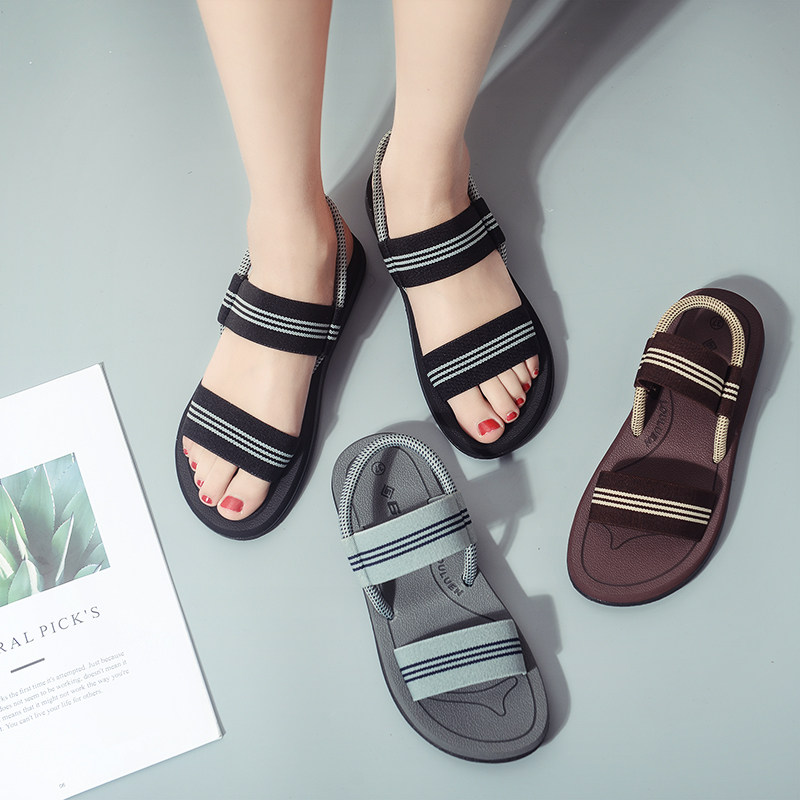 Summer new all-match sandals female Korean version student flat bottom simple large size 41-43 soft bottom elastic two-wear elastic belt