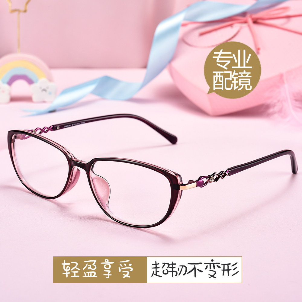With finished myopia anti-blue light color-changing retro glasses frame female models with degree eye frame color-changing glasses frame ultra-light