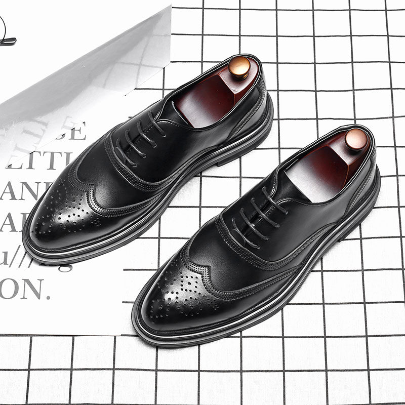 Hong Kong Chaobok Brock men's shoes genuine leather Inron Fashion Business Casual Fashion Groom Married Men's Leather Shoes Man