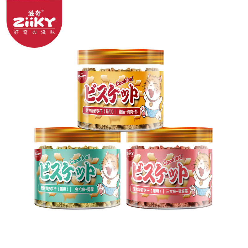 Ziqi Cat Biscuits Cat Treats Calcium Supplementing Molar Nutrition Cat Treats Cat Mint Hair Removal 100g*3 Cans