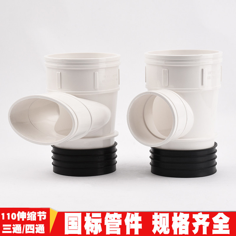 pvc110 vertical flat three-way telescopic joint three-way vertical flat four-way kitchen toilet balcony drainage displacement pipe fittings