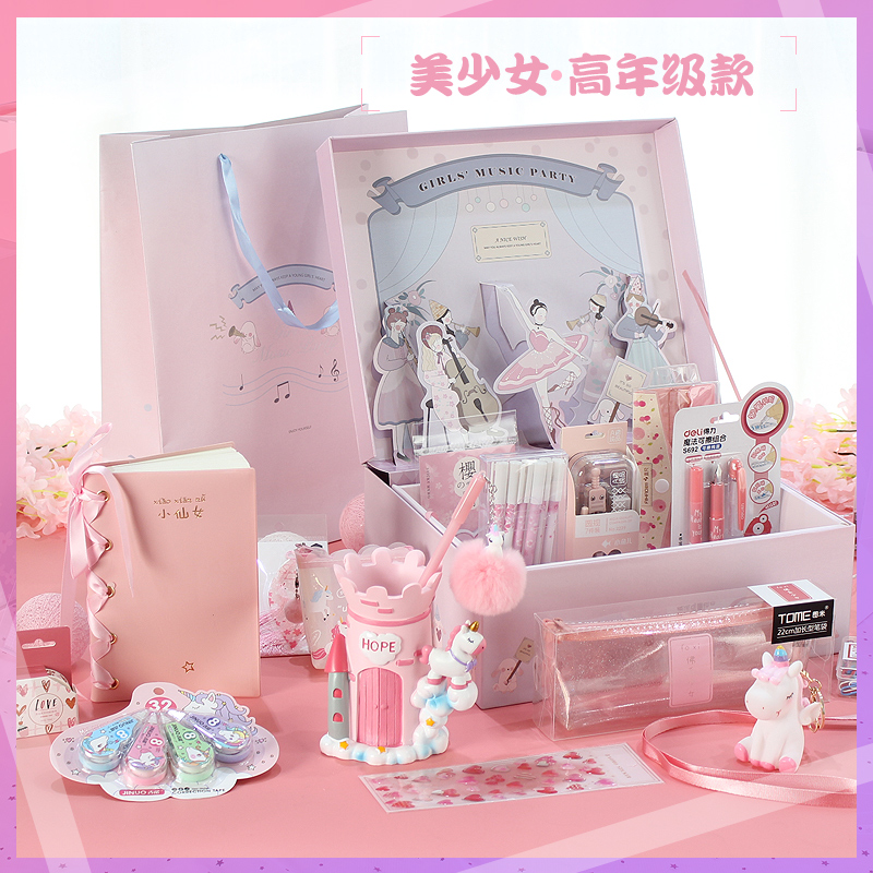 2021 June 1 high-end gift Cherry blossom beautiful girl Starry Sky stationery set gift box Kindergarten children Girl heart Primary school students Junior high school students School supplies Practical student prizes Birthday gifts