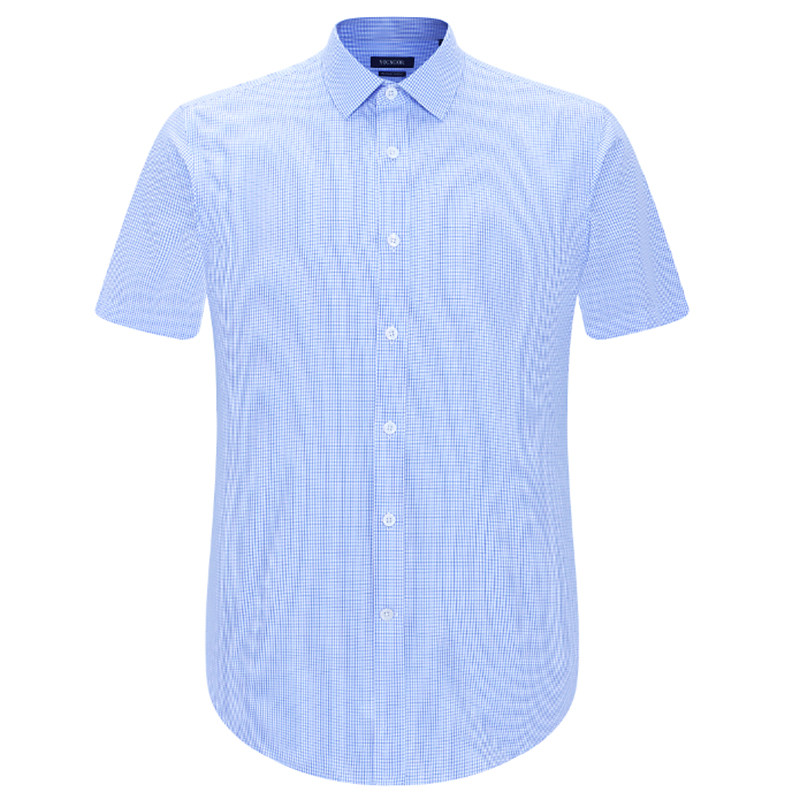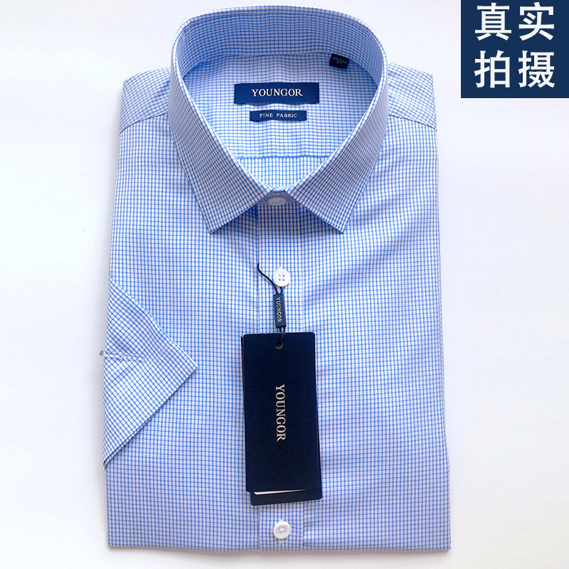 Youngor short-sleeved shirt male lapel slim blue striped cotton high-cut TP non-hot summer youth half shirt