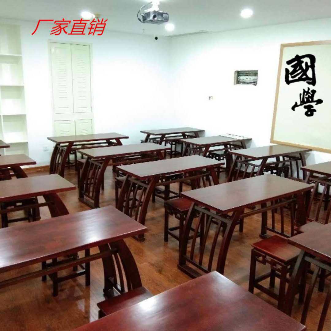 National School Desk Solid Wood Imitation Ancient Chinese Style Double Brush Calligraphy Desk National Hall Training Course Table And Chairs Students Painting Table
