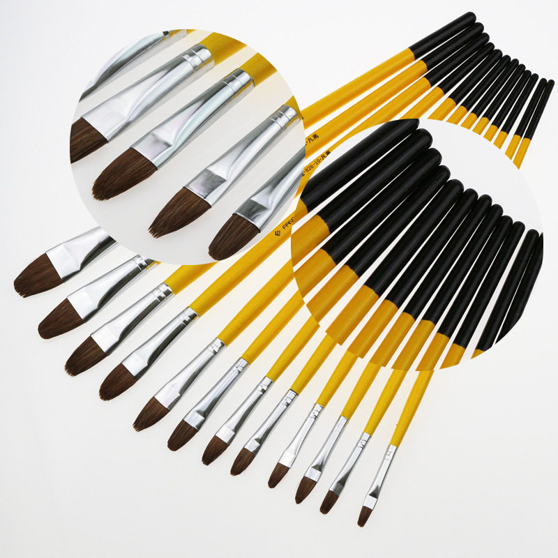 Round Head Wolf howling powder paintbrush suit 6 duck tongue flat-head propylene watercolor paint Fine-pole graffiti paintbrush