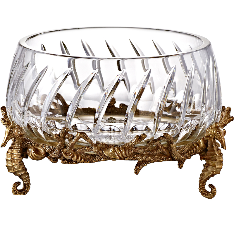 Phoenix Mercure luxury European Prague series crystal glass with copper seahorse shell coral round fruit plate