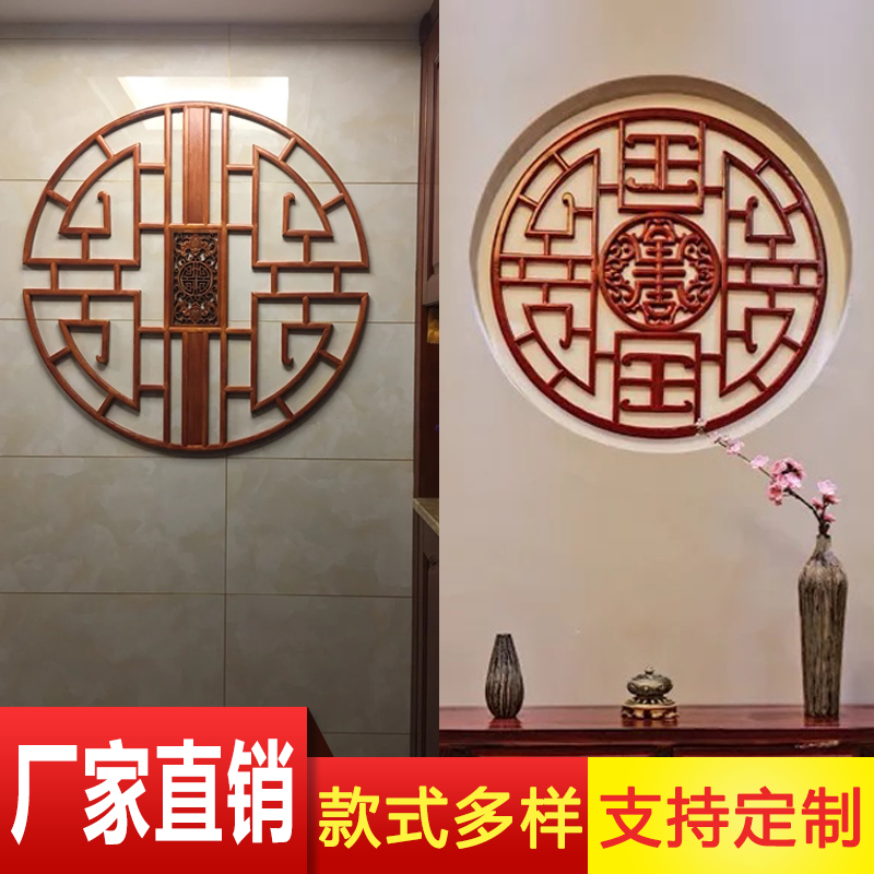 Dongyang wooden carving Chinese antique solid wood ceiling round window flower and window pattern curtain lampshade customized