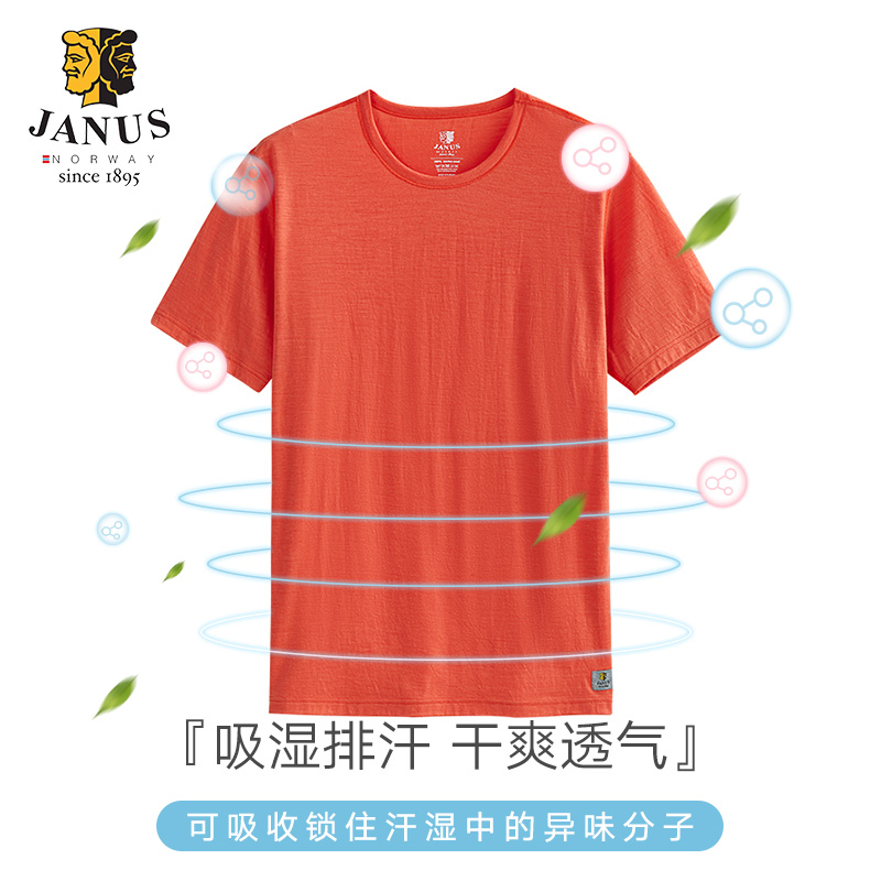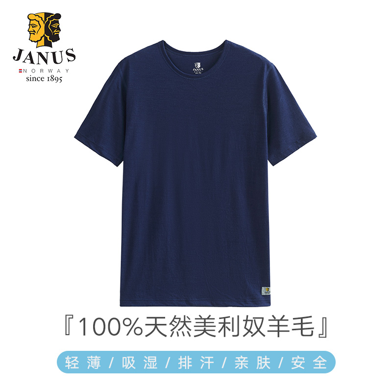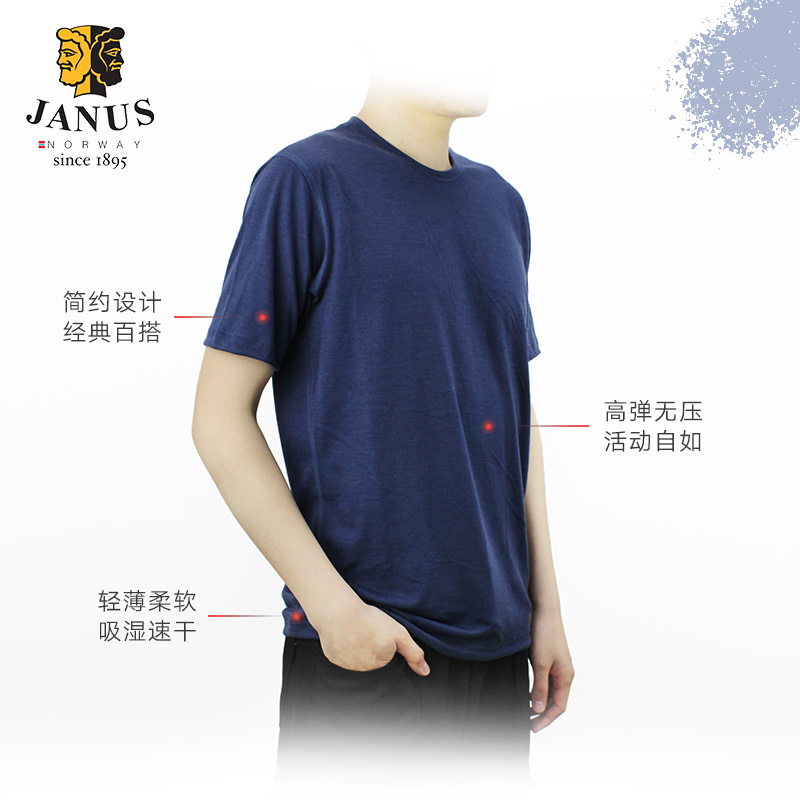 JANUS Norwegian Merino wool men's short-sleeved T-shirt summer quick-drying crew neck European and American solid color thin slim-fit top