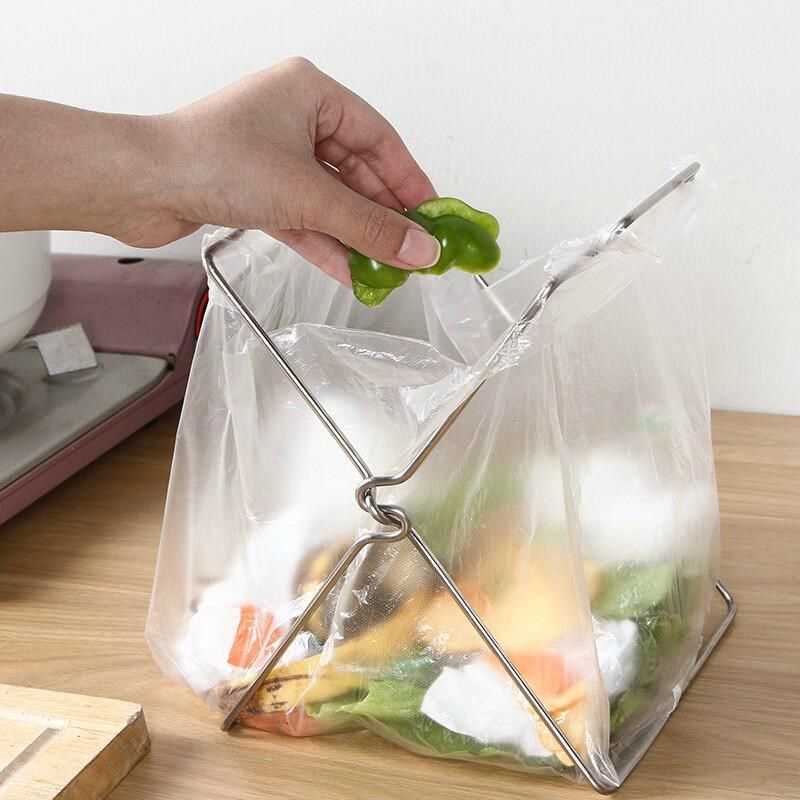 Stainless steel folding kitchen garbage rack Garbage bag rag rack Desktop plastic bag reuse shelf Trash rack