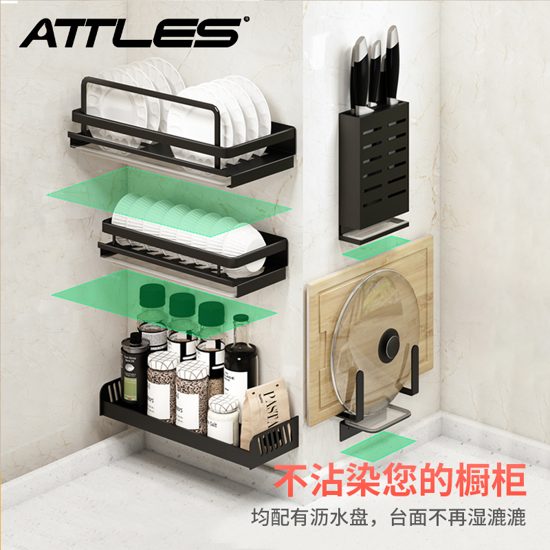 Kitchen rack non-perforated wall-mounted space aluminum knife holder hardware pendant cutting board storage chopping board rack pot cover rack