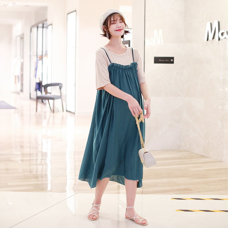 Summer pregnant woman with baby bag Skirt Suit Fashion style Dress 2022 Summer Clothes Out of small frescoed hanging band dress Two sets