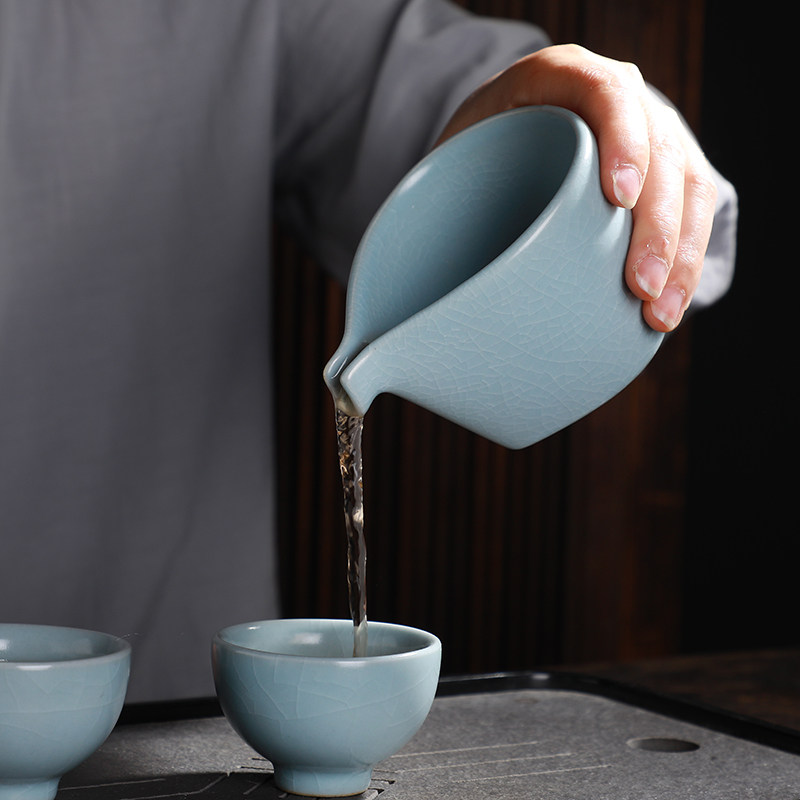 Handmade Ru kiln fair cup open sheet to raise Ru porcelain tea sea retro ice cracked sub-tea instrumental Kung Fu Tai Ceramics Uniform Cup