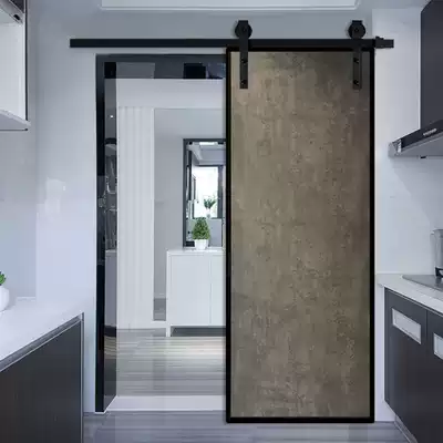 Barn door hanging wheel aluminum alloy invisible door sliding door partition Nordic powder room kitchen indoor paint-free aluminum wooden door