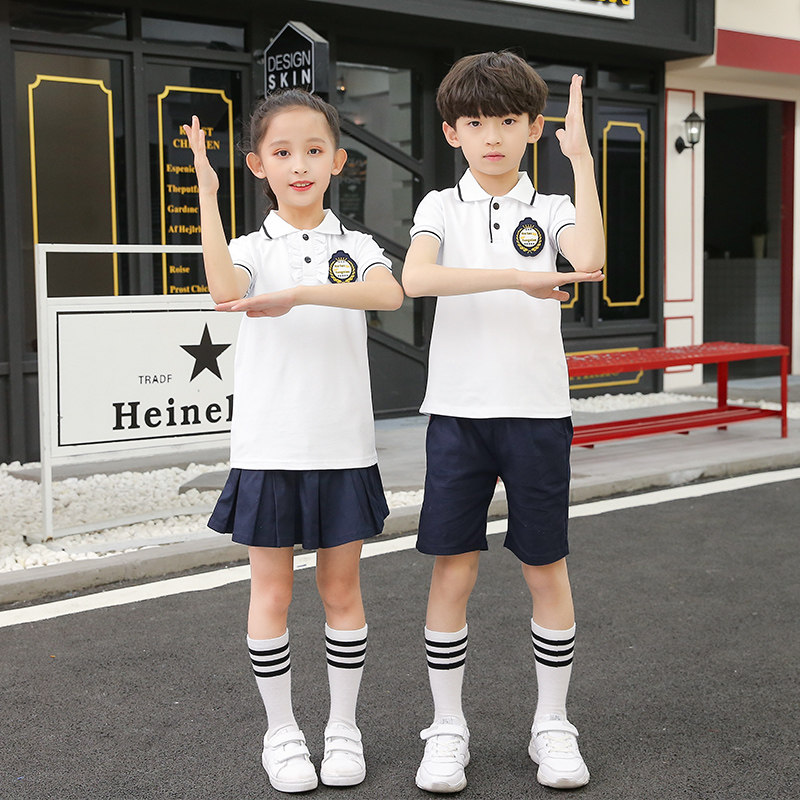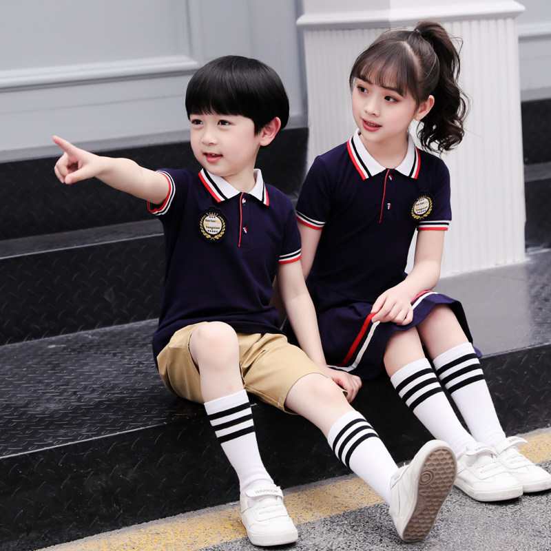 Summer Dress Pupils School Uniform Skirt British College Style Children Graduation Class Dress Short Sleeve Set Kindergarten Summer Garment