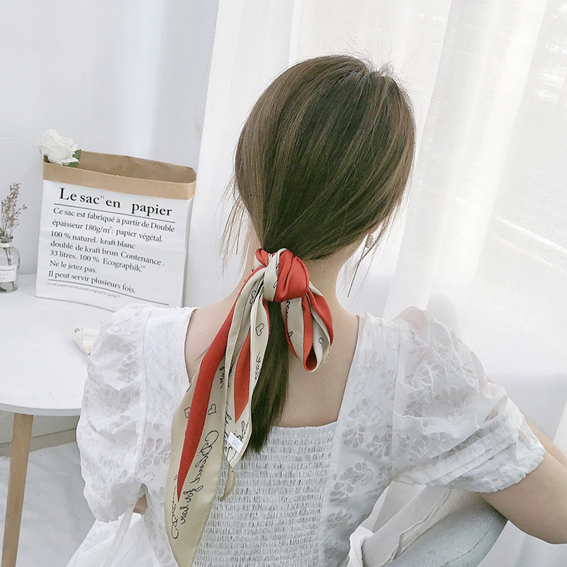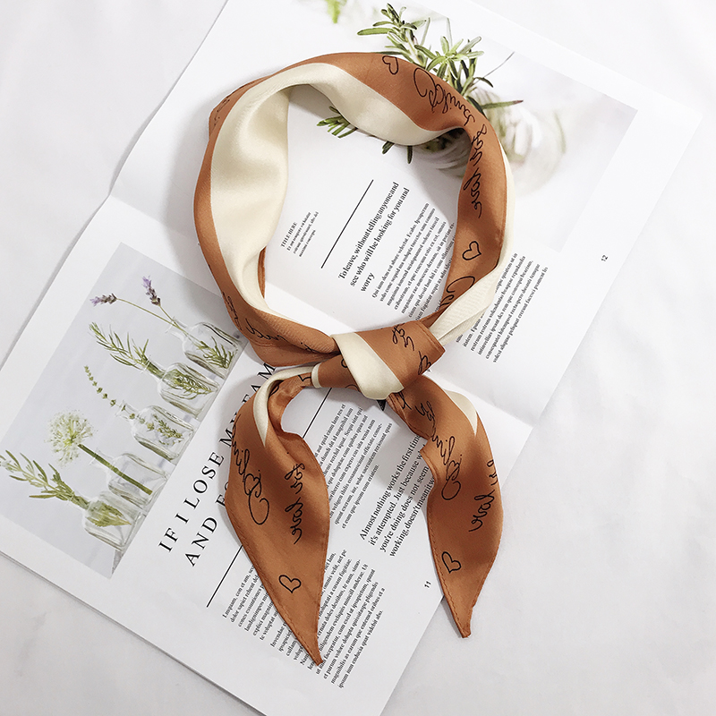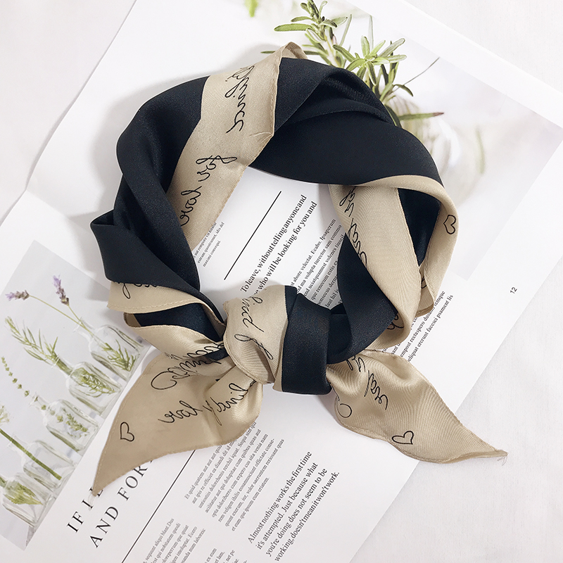 Korean Chic Rhombus Decorated Small Silk Scarf Trendy Retro Hair Color Sharp Corner Small Neckline Scarf Turban Career Scarves