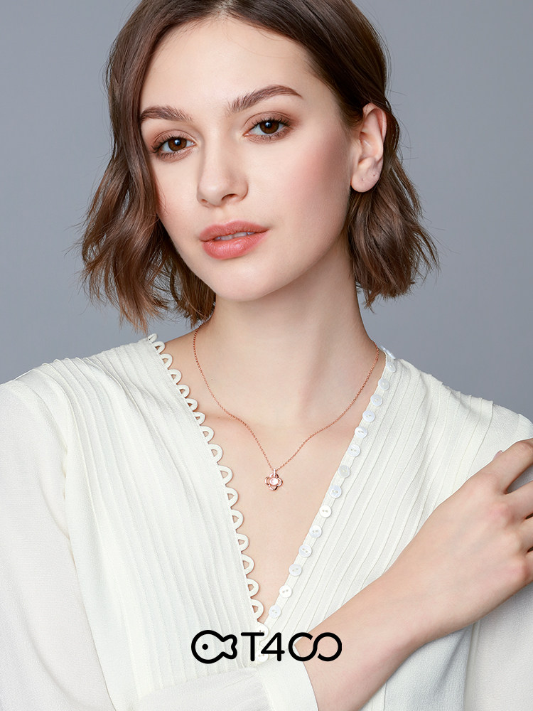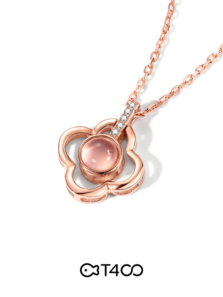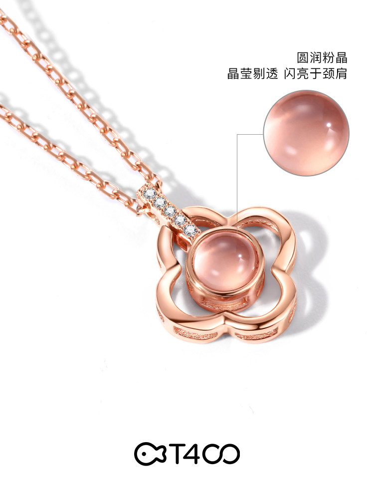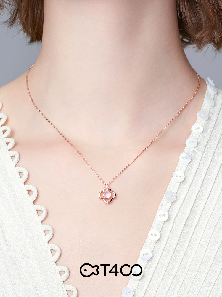 T400 four-leaf clover necklace 2021 new women's sterling silver simple collarbone chain light luxury niche pink crystal trick peach blossom
